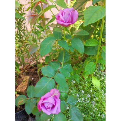 Эта роза может расти как на клумбах, так и в контейнерах. Её цветок окрашен в сложный пурпурно-лавандовый цвет, который при распускании светлеет. Внутренняя часть бутона остаётся сиреневой. Названия «голубая» и «синяя» для этой розы условны: многие фото в каталогах обработаны в фоторедакторах, поэтому не отражают оригинальный окрас.